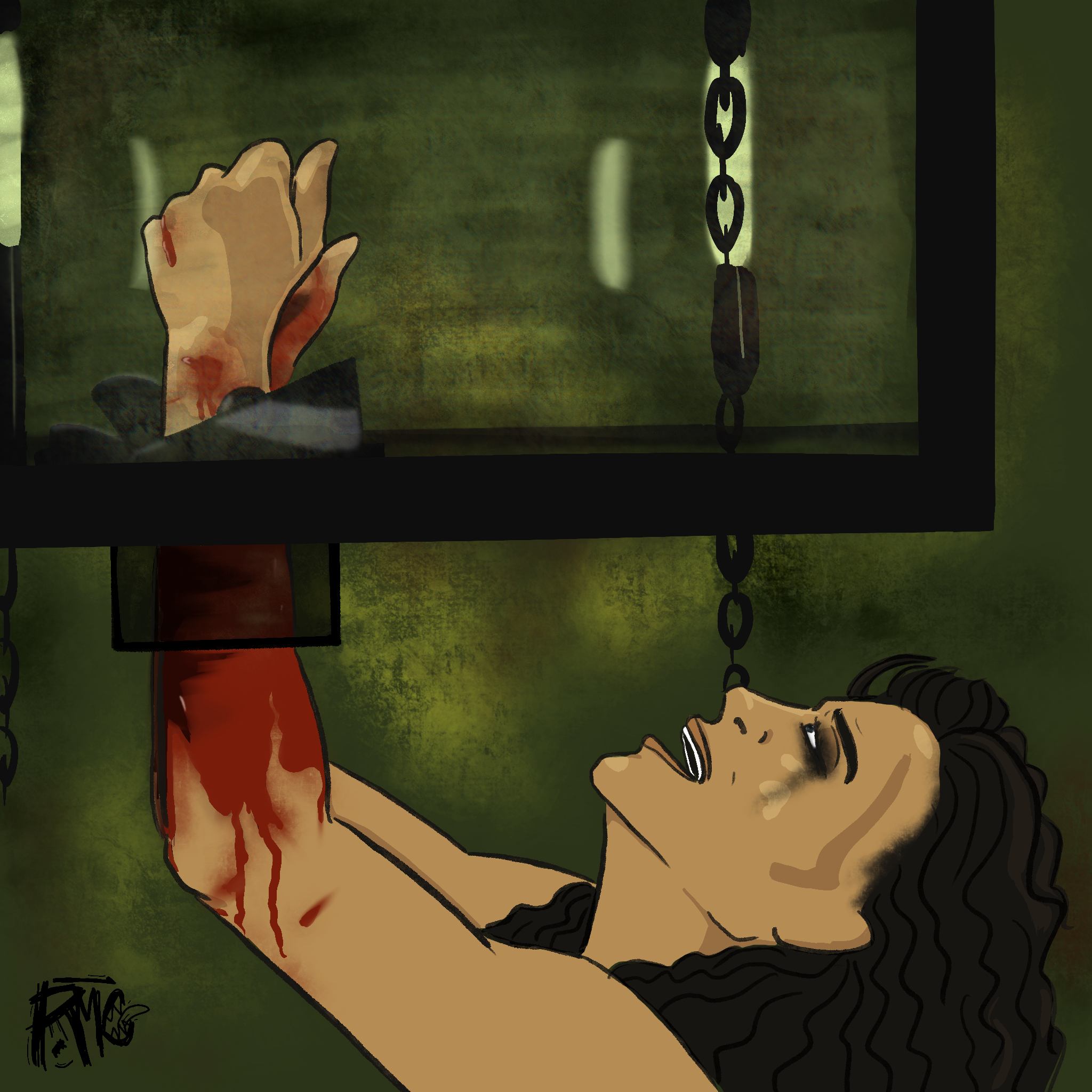 Saw II (2005) Still Digital illustration of the needle box scene from Saw II. Drawn for Goretober 2024 (prompt: sharp objects).